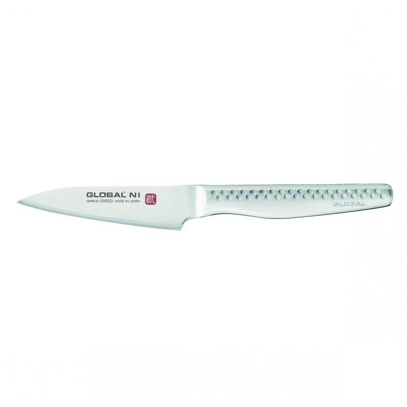 GLOBAL NI knives all feature an oriental styling, with a distinctive kink in the knife blade. The blades are sharpened at a 15-degree angle, to provide an extremely sharp edge and go through an extra sharpening process in the factory.