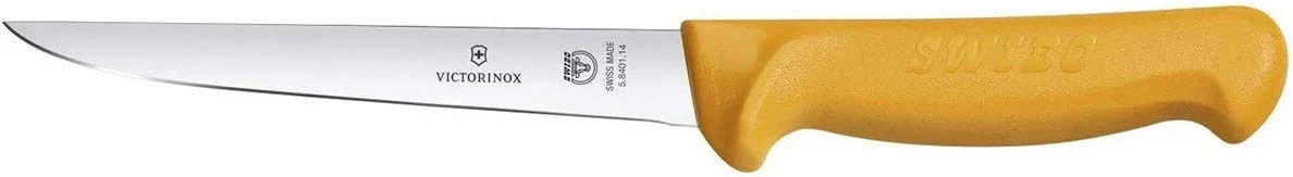 Whether you’re a butcher, a chef or an everyday kind of cook, the Swibo professional line of Victorinox knives delivers the precision and efficiency of the restaurant kitchen to your home. Combined with a sharp straight, wide blade that measures 14 cm in length, the non-slip handle of the Swibo Boning Knife has been ergonomically designed so that cutting without resistance and separating meat from the bone becomes a simple, swift task.